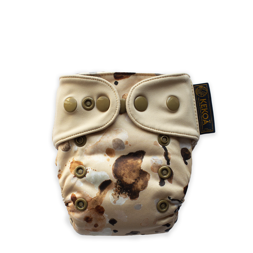 Kekoa’s Premium range are consciously designed with bilayer technology- eco-luxury at its finest. Pairing simple innovation with elegance they are not only practical and functional, but beautifully luxurious. The Newbown nappy is a perfect miniature of the Premium OSFM nappy but featuring double gussets for the protection required with newborns.