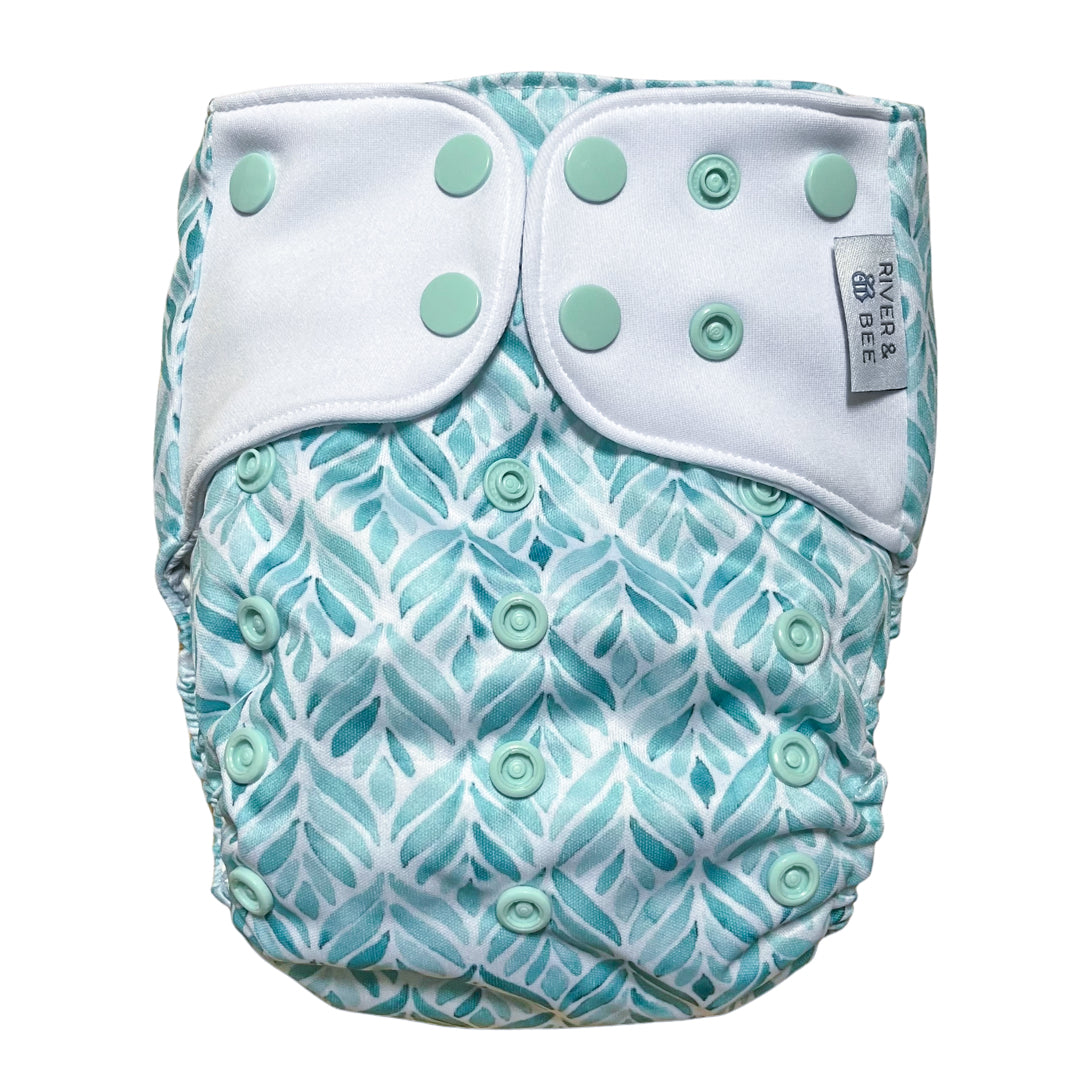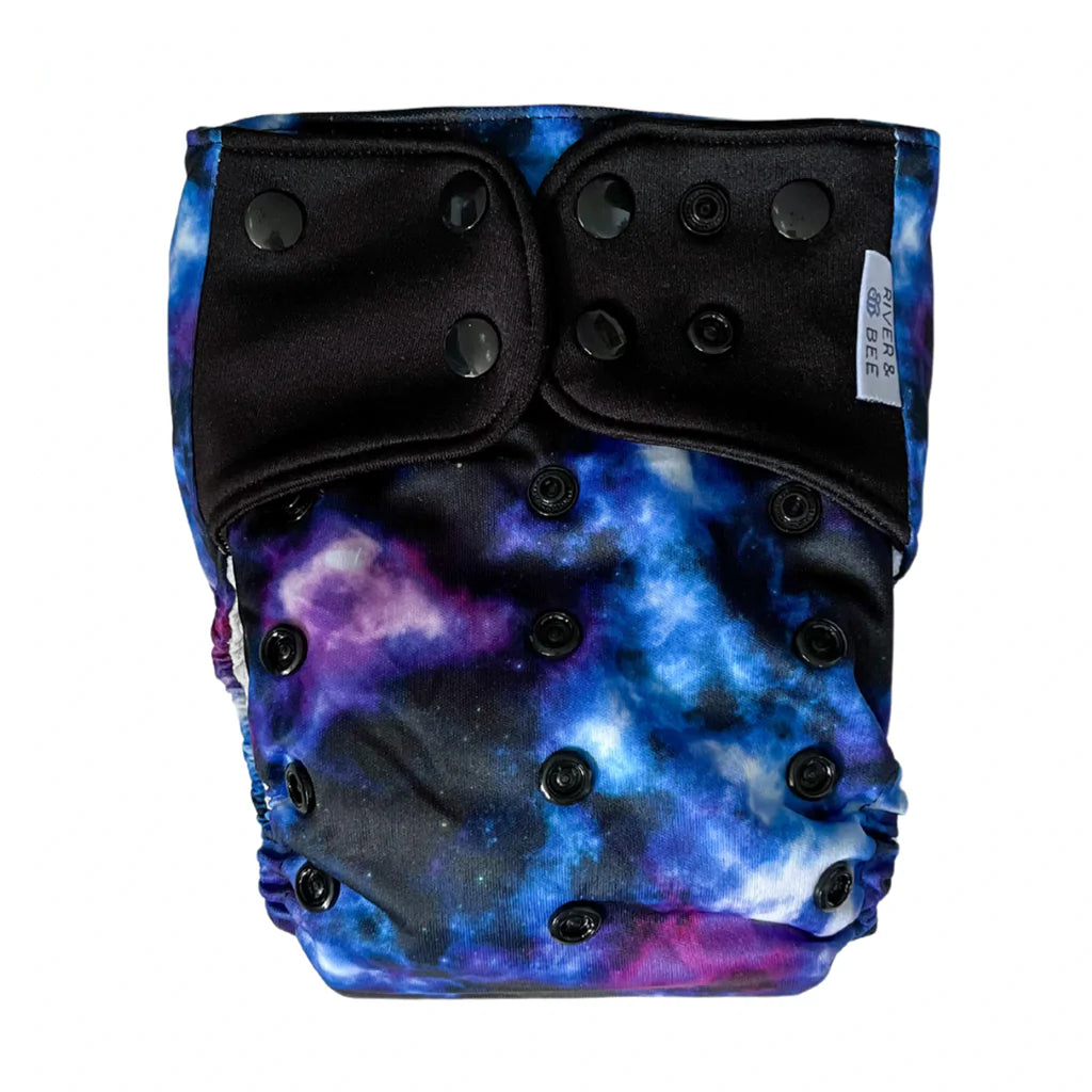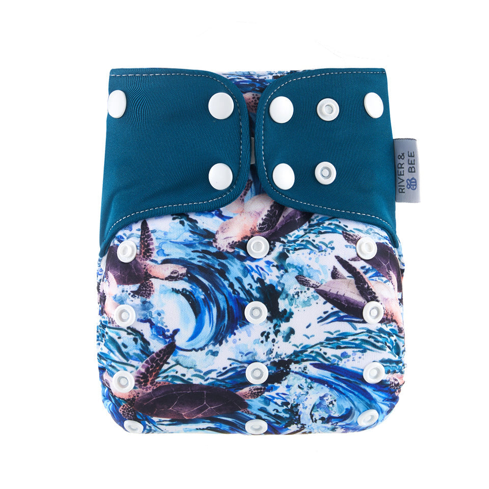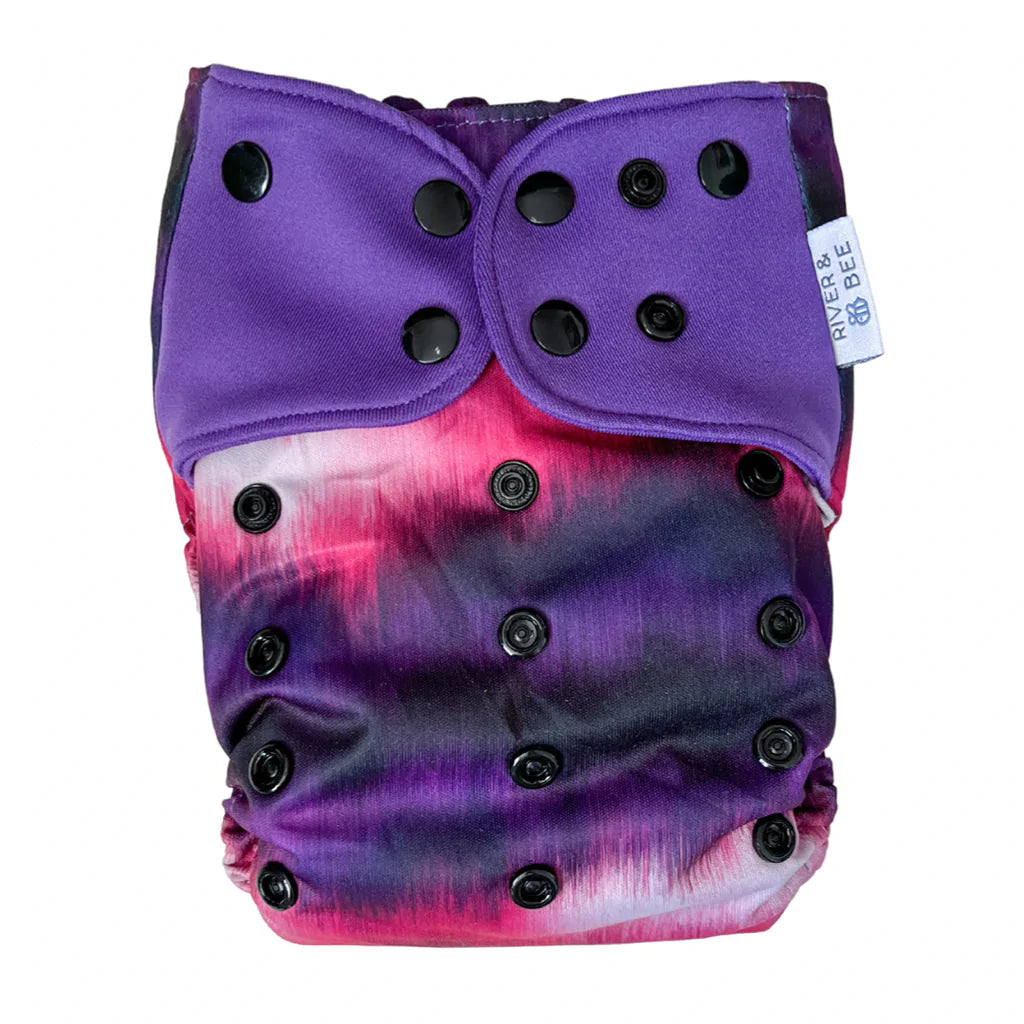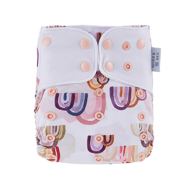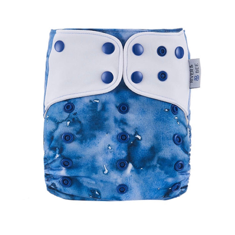 River & Bee cloth nappies are a hybrid OSFM (one size fits most) all-in-two/pocket nappy. Beautiful prints and high quality fabrics.
