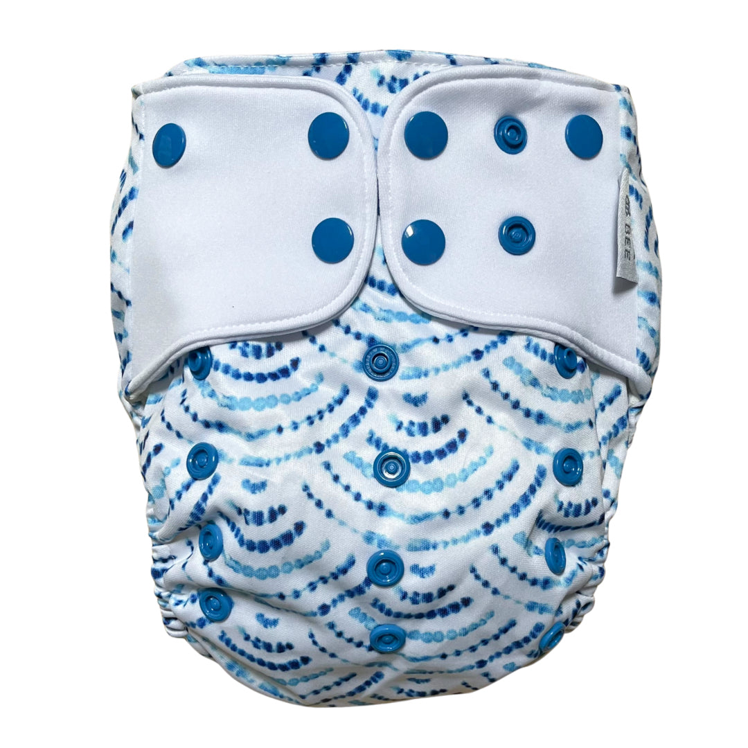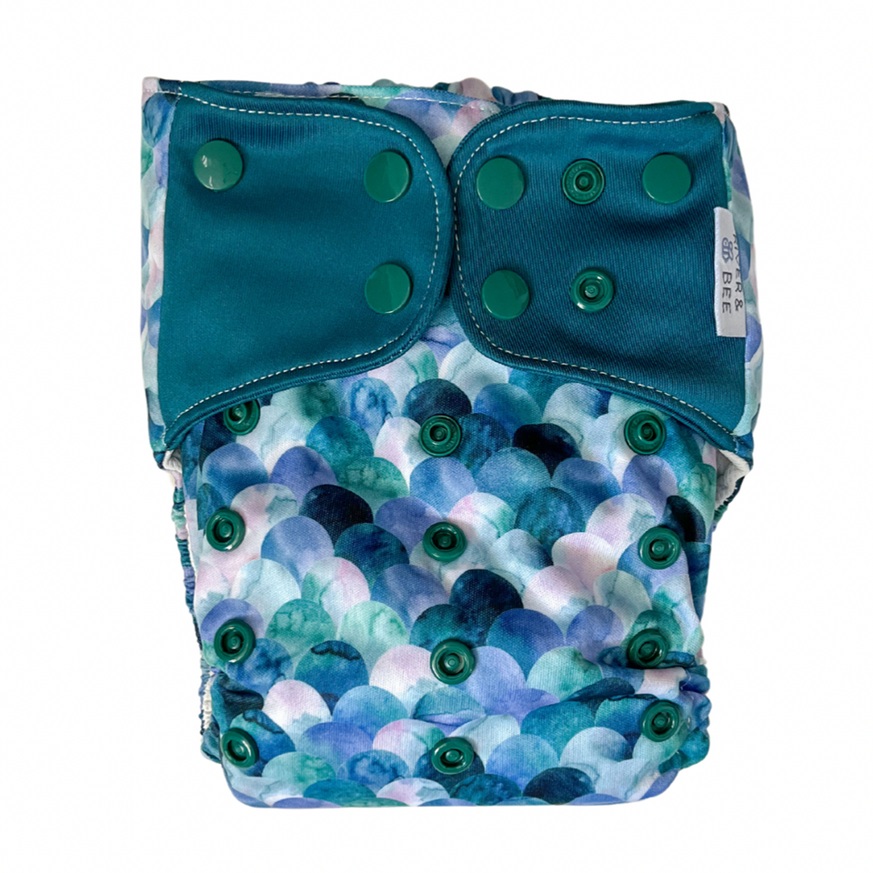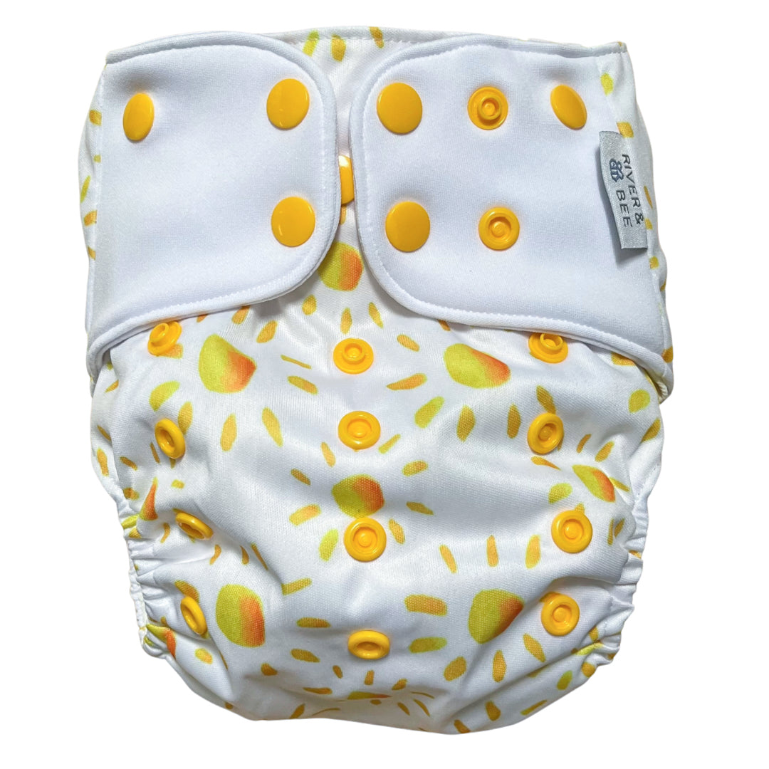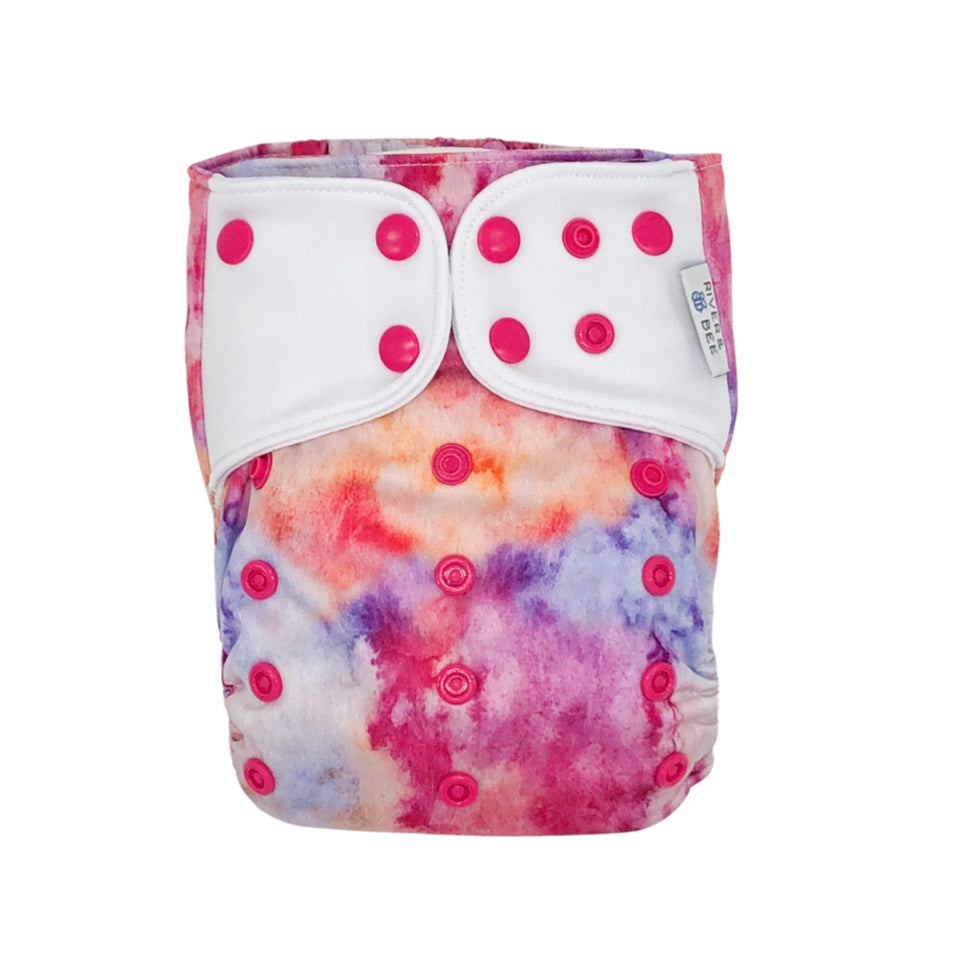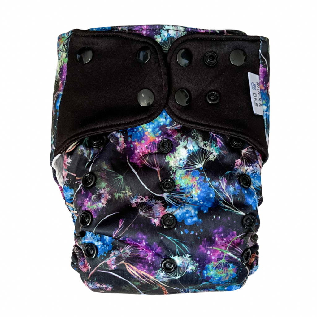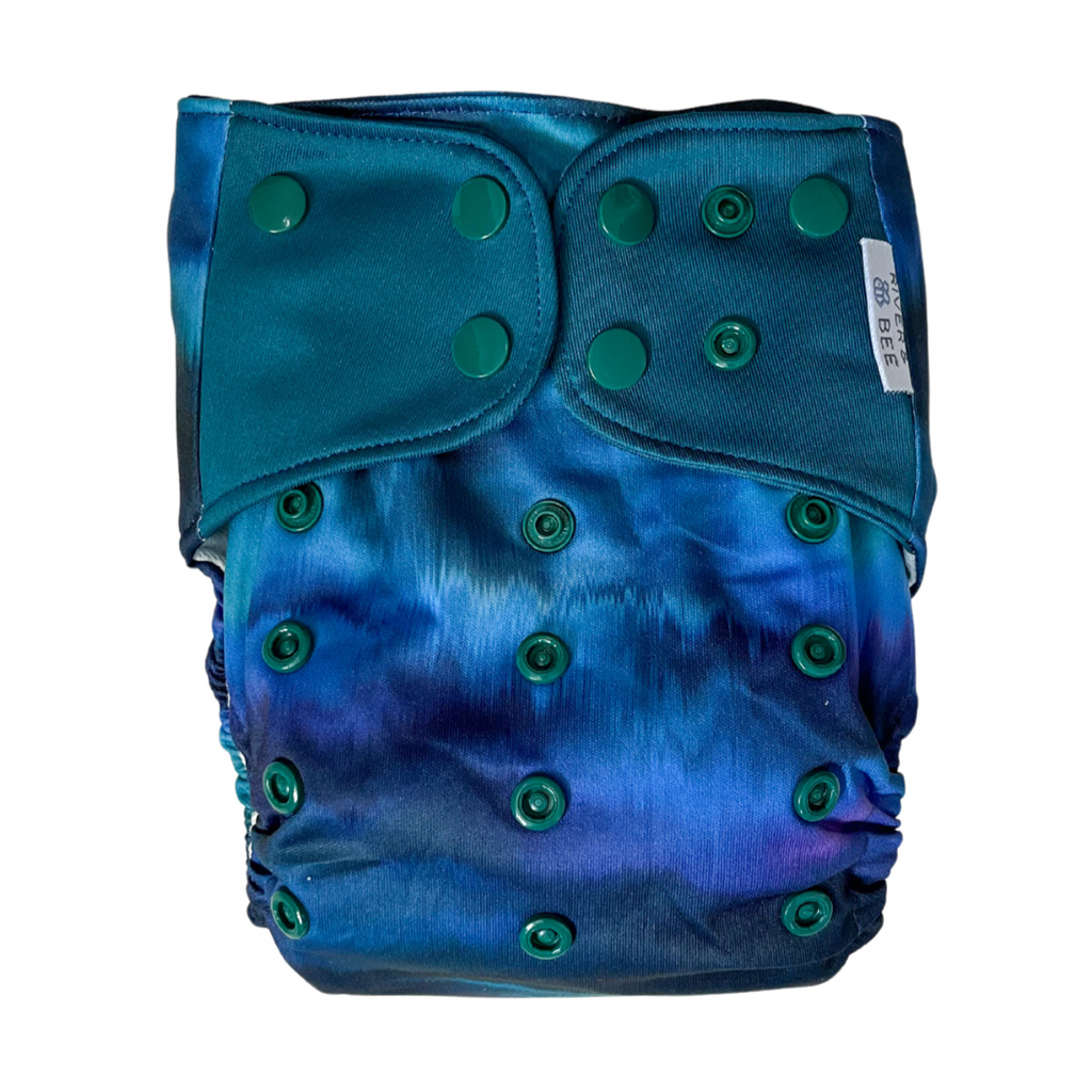 River & Bee cloth nappies are a hybrid OSFM (one size fits most) all-in-two/pocket nappy. Beautiful prints and high quality fabrics.