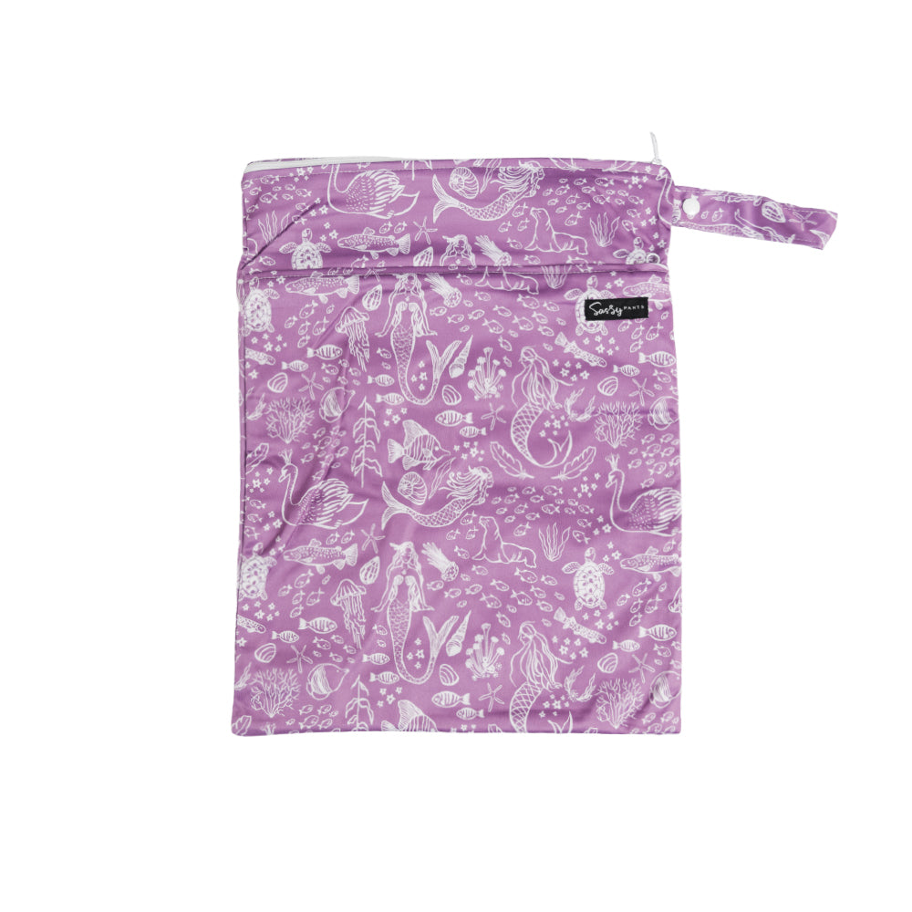 These wet bags are made from a waterproof breathable fabric and have a zip closure and a snap handle for convenience!