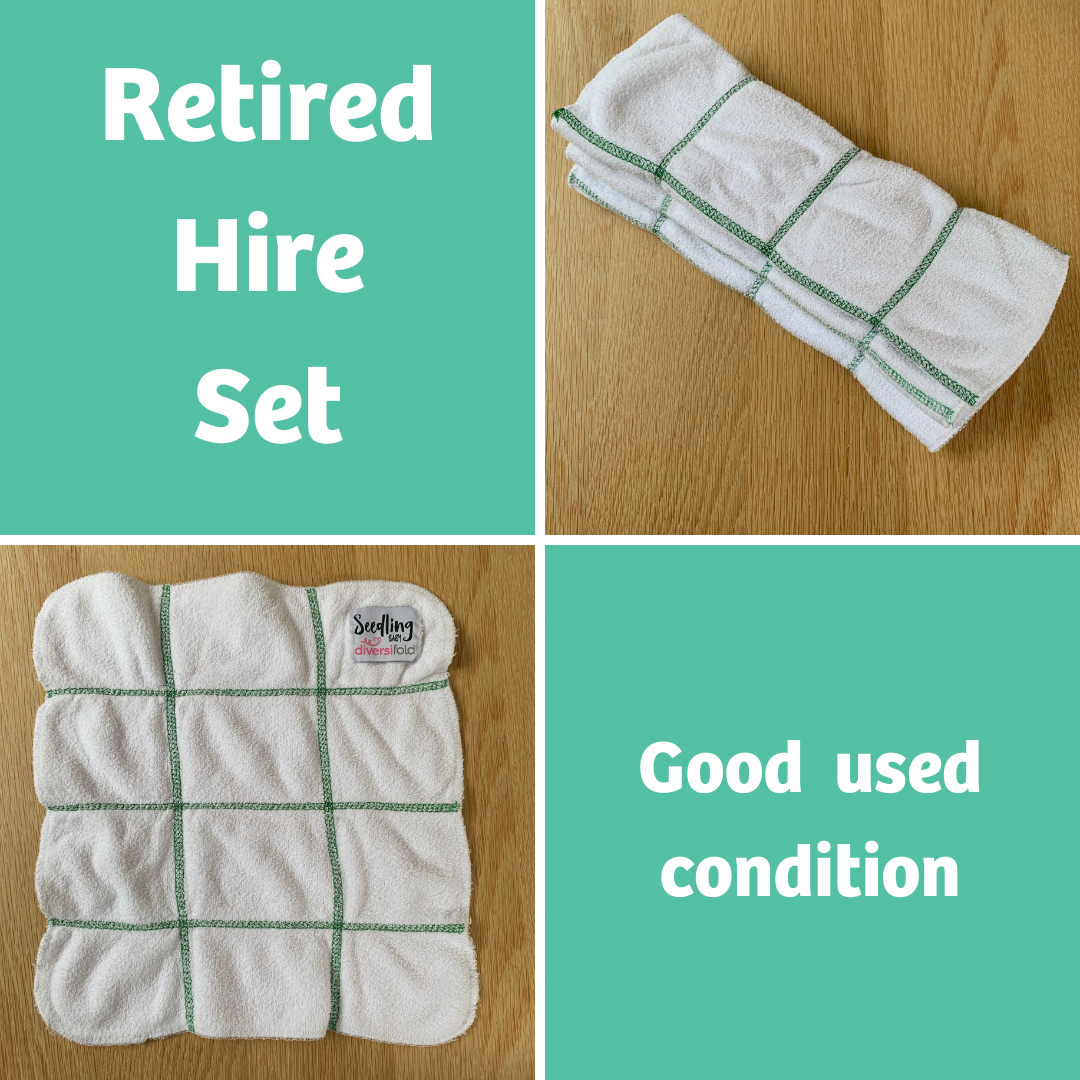 Diversifold Mini 28X28cm. Can be used with a snappi and wrapped on a 2-4kg baby. Or folded in three inside a cover or pocket nappy on a 3-8kg baby. This is the size that comes inside the Seedling Mini-fit pocket.
